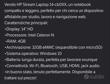 Vendo Hp Laptop bianco , notebook compatto e leggero , perfetto per chi cerca un dispositivo affidabile per studio , lavoro e navigazione web .