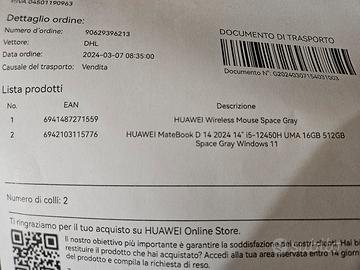 vendo huawei matebook d14 2024 12th gen core intel i5 16 gb di RAM con 512 gb di memoria. è un laptop 14 pollici acquistato a marzo 2024, dotato di processore intel i5 che garantisce ottime performamce e lettore impronte digitali ed usato solo per seguire lezioni universitarie.piccolo e leggero, con gran cura del design (frame alluminio stile macbook air).Il laptop è in condizioni PARI AL NUOVO. Ho fattura di acquisto, laptop e caricatore originale e scatola originale. presente nel kit wirless mouse ancora nuovo (scatola non aperta). Consegna a mano, zona trezzano sul naviglio.