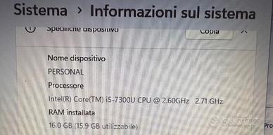 LAPTOP LENOVO 470T Modello 20HES4X202 PROCESSORE INTEL i5-7300CPU @2.60GHz DCO SSD 250GB MEMORIA 16 GB