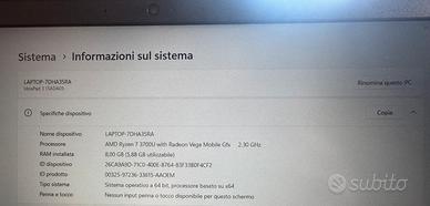 Laptop Lenovo IdeaPad 3 in ottime condizioni, perfetto per lavoro, studio e intrattenimento. Il portatile è stato usato con cura ed è ancora molto performante. Piccolo difetto in basso a destra visibile sulla foto 3.