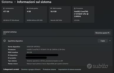 Vendo PC portatile comprato nel 2019 come da titolo per passaggio a modello più performante in gaming.