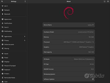 Il computer verrà fornito senza sistema operativo. Attualmente è installato Debian 12. Se concordato posso installare una qualunque distribuzione linux o anche windows, ma in quest'ultimo caso dovrete poi pensarci voi alla chiave di attivazione per attivare il sistema (si trovano anche sui 10€).