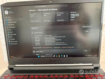 Vendo fantastico computer portatile da Gaming Acer Nitro 5 dual gpu -Intel i5 10300H 2.50GHz (4.50GHz TurboBoost) -8GB DDR4 2933MHz (espandibile fino a 32GB) -Nvidia GTX 1650 Ti 4GB Dedicata -Intel UHD Graphics -SSD NVMe PCI-e 4.0 Crucial da 500gb -con 25€ anche HDD SATA 1TB Seagate Firecuda il portatile dispone di una variegata gamma di porte tra cui -Ethernet a 2.5G -USB-C 3.2 Gen2 -2x USB-A 3.2 Gen1 -Jack audio 3.5 -HDMi condizioni estetiche come da foto Il portatile è stato usato pochissimo ed è sempre stata effettuata manutenzione, viene spedito con la sua scatola originale compresa di manuali, adesivi e caricabatterie originale da 140W Installato Windows 11 completamente aggiornato e attivato ufficialmente compreso anche di Office 2024