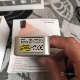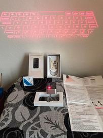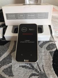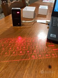 Tastiera portatile laser che proietta una tastiera rossa su qualsiasi superfice piana. Si collega tramite Bluetooth a telefoni cellulari, tablet e notebook e pc. Cavetto usb in dotazione per la ricarica.