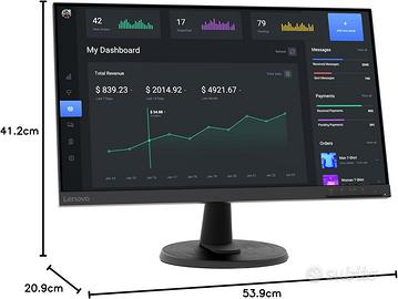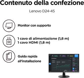 Lenovo D24-45 Monitor 24" FHD (1920x1080), 4ms, 75Hz, Frameless, AMD FreeSync, Schermo opaco antiriflesso, regolabile in inclinazione, HDMI e VGA, VESA 100x100