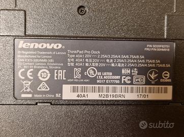 Stazione di docking Lenovo ThinkPad. - Modello 40A1. - Design nero. Di seguito elenco alcuni dei modelli di laptop Lenovo compatibili con questa docking station:Lenovo ThinkPad L440, L450, L460, L470, L540,L560,L570,P50s, P51s, T440,T440p,T440s, T450,T450s, T460, T460p, T460s,T470,T470s,T540p,T550, T560, T570,W550s,X240,X250,X260,X270. Alimetatore praticamente nuovo.