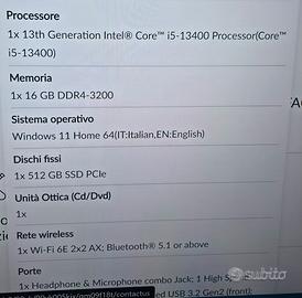 vendo stupendo PC Fisso Lenovo come nuovo due anni di vita senza usura tenuto maniacalmente con 16gb ram e 512 ssd ho messo alcune caratteristiche e un ottimo pc con Intel icore 5 di 13 generazione prezzo 350 non trattabile completo di scatola originale comprato da Expert contattato qui non Affaristi ma concreti