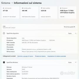 Computer All-In-One 24 pollici Lenovo IdeaCentre AI AIO 3 24ALC6 come nuovo con: - Processore AMD Ryzen 7 5700U - 8GB di Ram - 500GB ssd - Schermo ampio e definito da 24 pollici. ⁃ Tastiera e mouse inclusi. ⁃ Inclusi imballi originali per trasporto sicuro