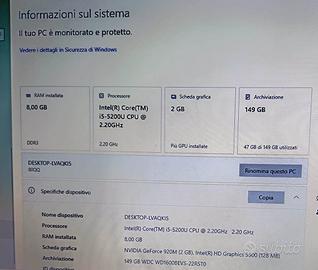 Vendo laptop notebook Lenovo IdeaPad 100-15IBD Intel® Core™ i5 i5-5200U Computer portatile 39,6 cm (15.6") 8 GB DDR3L-SDRAM 160 GB HDD NVIDIA® GeForce® 920MX Wi-Fi 4 (802.11n) Windows 10 Nero