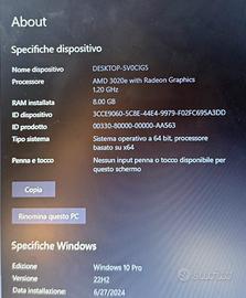 Computer portatile Lenovo IdeaPad 3 – 8GB RAM – ottime condizioni perfettamente funzionante e pronto all’uso. Specifiche tecniche: •processore AMD 3020e with Radeon Graphics •frequenza 1.20 GHz •RAM 8 GB •schermo 15,6 pollici •webcam integrata con possibilita di oscurazione •porte USB / HDMI •tastiera completa con tastierino numerico Anche esteticamente si presenta in ottime condizioni. Compreso di custodia, caricatore originale lenovo e mouse logitech Prezzo: 150€ Disponibile per prova e ritiro. Info: 3920094942