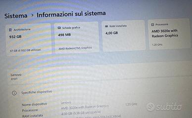 Vendo Lenovo Ideapad 3 modello 81W1 perfettamente funzionante compreso di caricatore