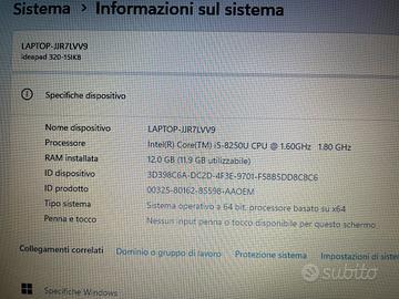 Vendo laptop Lenovo IdeaPad 320 in buone condizioni, perfettamente funzionante e pronto all’uso. 🔧 Caratteristiche principali: •Processore Intel Core i5-8250U (8ª generazione) •RAM 12 GB (ottimo per multitasking) •SSD da 500 GB (veloce e capiente) •Scheda grafica dedicata AMD Radeon 530 + Intel UHD 620 •Sistema operativo Windows 11 già installato 💡 Ideale per: •uso quotidiano •lavoro da ufficio •navigazione, streaming, studio •programmi leggeri di grafica 📦 Incluso: •PC portatile •Alimentatore 📌 Condizioni: Normali segni di utilizzo, ma nessun problema funzionale. Il PC è fluido grazie a SSD e RAM potenziata. 📍 Consegna a mano oppure spedizione a carico dell’acquirente.