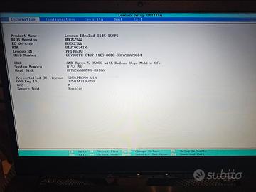 Vendo per ricambi Notebook Lenovo Ideapad S145-API. Versione Ryzen 5 3500u. Sicuramente funzionante il disco ssd, il display, la batteria, il touchpad. Si accende ma non si vede nulla a video. Lo vendo come rotto. Se siete esperti e riuscite a sistemarlo. Manca il coprifilo del monitor e l'alimentatore.