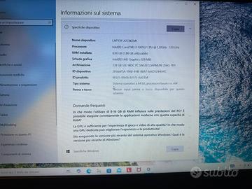 Vendo computer portatile Lenovo IdeaPad S145-15||L in ottime condizioni, ideale per smart working, università, scuola o uso domestico quotidiano. II PC è fluido e scattante grazie alla combinazione di processore Intel di decima generazione e disco SSD. Specifiche Tecniche: • Modello: Lenovo IdeaPad S145-15|IL • Processore: Intel Core i3-1005G1 (frequenza base 1.20GHz) • RAM: 8 GB DDR4 (molto più veloce delle versioni base da 4GB) • Archiviazione: SSD da 256 GB (Western Digital) per avvii rapidissimi • Schermo: 15.6 pollici con cornici sottili (Narrow Bezel) • Audio: Dolby Audio • Sistema Operativo: Windows 10 (aggiornabile a 11) Stato del prodotto: Il PC è stato tenuto con cura, non presenta difetti estetici rilevanti e la batteria tiene ancora bene la carica. Viene consegnato pulito, formattato e pronto all'uso con il suo caricabatterie originale.