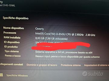 laptop i3 di 8° generazione 8 giga di ram ddr4 256 giga pcle usato pochissimo in ufficio ottima batteria