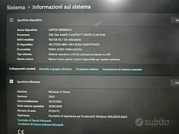 Questo portatile è stato acquistato da pochissimo tempo a poco più di 1.000€ e cerco di venderlo nel possibile per necessità. Scatola e imballaggi ancora nuovi. È un portatile favoloso, veloce e scattante grazie al processore i7 di 13ª generazione. Non presenta nessun tipo di graffio o ammaccature. Ancora come nuovo, mi ha sempre retto in 4K ogni tipo di lavoro/video con una buona connessione ad internet. 3 modalità con tasto rapido Fn + Q (Adattiva, Prestazioni e Risparmio Energetico) Caricatore originale appena usato Lettore impronte digitali. Accensione automatica all'apertura. Schermo: 15,6 pollici FHD Processore: i7-13620H ( da 2.40 GHz a 4.90 GHz) indicando un processore ad alte prestazioni. 10 Core e 16 Thread. Scheda grafica: Intel(R) UHD Graphics Ram: 16GB velocità:4800 MT/s Memoria: SSD 512GB NVme Windows 11 Home Prezzo molto trattabile basta che mi fate sapere e per info aggiuntive non esitate a chiedere.