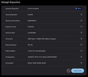Lenovo Legion 5 PRO 16 pollici 16ARH7H, ancora 8 MESI DI GARANZIA.