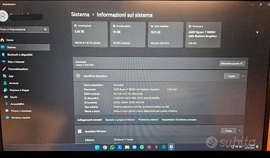 Prezzo leggermente trattabile Vendo Lenovo Legion 5 tenuto in perfette condizioni, usato sempre con base di supporto rialzata con ventole. In foto presenta 1.38 TB di memoria ssd poiché ho aggiunto uno da circa 870GB. Non è mai stato overclockato o subito cadute o sostituiti pezzi. Fornisco anche alimentatore originale da 300W. Caratteristiche: Display 15.6" FullHD 165Hz 1ms, Processore AMD Ryzen 7 5800H, 512GB SSD, RAM 16 GB DDR4 3200 Mhz, Scheda Grafica RTX 3070 8GB GDDR6, WiFi 6.