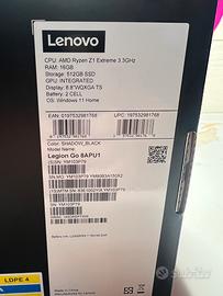 Lenovo legion go 16 512 Aperta solo ler provarla piena garanzia lenovo Pellicola gia applicata come nuova