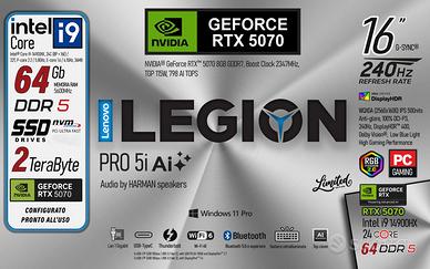📦🚚 Cosa riceverete : Un laptop Lenovo in edizione esclusiva preconfigurato e pronto all'uso con tutti i driver per il corretto funzionamento delle periferiche hardware. ✅ Garanzia Italia 2 anni: Contenuto della confezione : Lenovo Legion PRO 5 AI 16"- Alimentatore