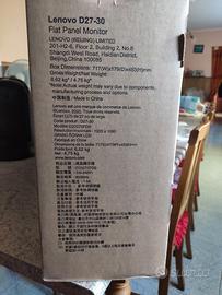 Vendo monitor Lenovo D27-30 con display 27" Full HD, VA (1920x1080, 75Hz, 4 ms, AMD FreeSync, Input HDMI+VGA, Cavo HDMI) nuovo (pacco ancora sigillato, vedi foto) con 2 anni di garanzia originale. Trovate prezzo e tutte le info online cercando il modello. Prezzo non trattabile.