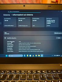 Portatile Lenovo Think Pad T460 con Windows 11 Pro. Perfettamente funzionante. REVISIONATO totalmente compresi componenti termici. Condizioni estetiche GRADO A+. Praticamente il portatile è in ottime condizioni. Nessuna rottura, nessuna consumazione. Per cortesia GUARDATE LE FOTO E LEGGETE PRIMA DI CONTATTARE!! Windows 11 Pro 25H2. Cpu Intel i5 6200. 8Gb Ram. 240Gb SSD. Grafica Intel HD. Display 14 pollici. Tastiera illuminata. Lettore e modulo SIM (basta inserire una sim dati per navigare) Wifi. Bluetooth. Webcam. Hdmi. NO LETTORE DVD. Batteria circa 6 ore segnate dal sistema. Carica originale incluso. Office e programmi utili già installati. Computer perfetto per uso domestico, scuola, lavoro. Non adatto al gioco. Pronto all’uso. NON CONSEGNO DA NESSUNA PARTE. PREZZO NON TRATTABILE E NON SPEDISCO. Ritiro a Salzano (Ve) Trattandosi di vendita tra privati, NON si fornisce alcuna forma di RIMBORSO, RECLAMO, RESTITUZIONE.