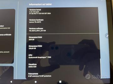 In ottime condizioni e pronto all'uso, vendo tablet Lenovo Tab P11 5G (modello TB-J607Z) completo di scatola originale e accessori. āļøCaratteristiche Principali: ⢠š ConnettivitĆ 5G: Naviga alla massima velocitĆ ovunque ci sia copertura. ⢠š± Ampio Display: Schermo 2K da 11 pollici (2000x1200) perfetto per streaming e produttivitĆ . ⢠āļø Ottime Prestazioni: Processore Qualcomm Snapdragon 750G con 8GB di RAM. ⢠š¾ Grande Memoria: 256GB di spazio di archiviazione per app, foto e video espandibile con microSD. ⢠š Comparto Audio/Video: Quattro altoparlanti con Dolby Atmos, fotocamera posteriore da 13MP e anteriore da 8MP. ⢠šBatteria: Grande batteria da 7700 mAh š¦Inclusi nella vendita: ⢠Tablet Lenovo Tab P11 5G (colore blu/teal come da foto). ⢠Scatola originale. ⢠Caricabatterie e cavo USB-C. ⢠Custodia protettiva a libro (colore nero) inclusa.