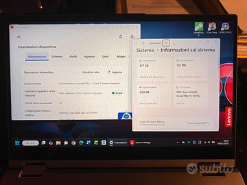 notebook Lenovo convertibile acquistato nuovo due anni fa e mai utilizzato, batteria nuova con 20 cicli e 95% della capacità come da foto.
