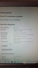 Vendo pc fisso usato perfettamente funzionante della Lenovo ThinkCentre M7099 processore Intel Pentium Dual core e5700 3 gb ram HD 250 gb con Windows 10 Home. Cedo con ritiro a mano a Salerno previo appuntamento contatto telefonico 3402528496