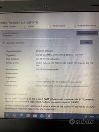 Lenovo ThinkPad E570 15,6" FHD i5 7a generazione. Pc ricondizionato in ottime condizioni perfettamente funzionante piccoli segni di usura. Completo di carica batteria originale e 2 batterie di cui 1 nuova DESKTOP-GNKSKCE Processore Intel(R) Core(TM) i5-7200U CPU @ 2.50GHz 2.70 GHz RAM installata 16,0 GB (15,9 GB utilizzabile) Scheda grafica NVIDIA GeForce GTX 950M (2 GB), Intel(R) HD Graphics 620 (128 MB) Archiviazione 233 GB SSD Intenso NVE Tipo sistema Sistema operativo a 64 bit, processore basato su x64 Windows 10 Pro