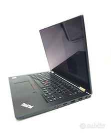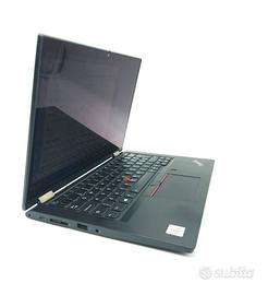Portatile ricondizionanto - Notebook e Tablet Lenovo ThinkPad L13 Yoga Intel® Core™ i5-10210U Ibrido (2 in 1) 13.3" Touch screen Full HD 8 GB DDR4-SDRAM 256 - Tastiera con stikers, condizioni - ottime . Per qualsiasi info chiedete pure GB SSD Wi-Fi 5 (802.11ac) Windows 11 Pro Nero. No Penna Tastiera con stikers. CONSEGNA ANCHE A MANO SU TARANTO - BRINDISI E DINTORNI Design Tipo di prodotto * Ibrido (2 in 1) Colore del prodotto * Nero Fattore di forma * Convertibile (a cartella) Materiale della scocca Alluminio, Magnesio, Polimero rinforzato con fibra di vetro (GFRP) Posizionamento di mercato Business Display Tipologia touch screen Capacitivo Dimensioni diagonale schermo * 33,8 cm (13.3") Risoluzione del display * 1920 x 1080 Pixel Touch screen * ✔ Tipologia HD Full HD Tecnologia touch Multi-touch Tipo di pannello IPS Processore Produttore processore * Intel Famiglia processore * Intel® Core™ i5 Generazione del processore Intel® Core™ i5 di decima generazione Modello del processore * i5-10210U Memoria RAM installata * 8 GB Tipo di RAM DDR4-SDRAM Archiviazione Capacità totale di archiviazione * 256 GB Supporto di memoria * SSD Modello scheda grafica integrata * Intel® UHD Graphics Audio Chip audio Synaptic CX11880 Sistema audio Dolby Audio Premium Numero di altoparlanti incorporati 2 Potenza altoparlante 2 W Collegamento in rete Wi-Fi ✔ Wi-Fi standard * Wi-Fi 5 (802.11ac) Standard Wi-Fi 802.11a, 802.11b, 802.11g, Wi-Fi 4 (802.11n), Wi-Fi 5 (802.11ac) Connettività Quantità di porte USB 3.2 Gen 1 (3.1 Gen 1) di tipo A * 2 Quantità di porte USB 3.2 Gen 1 (3.1 Gen 1) di tipo C * 2 Quantità porte HDMI * 1 Versione HDMI 1.4b Jack combinato per microfono/auricolare ✔ Connettore docking ✔ Modalità alternativa DisplayPort USB di Tipo C ✔ USB Sleep-and-Charge ✔ Porte USB Sleep-and-Charge