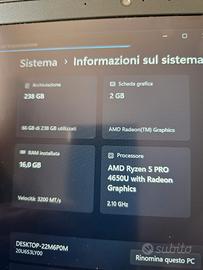 Display da 14" IPS FHD Webcam con microfono integrato Amd Ryzen 4650U 16gb di Ram 256 gb di ssd M2 Scheda video amd Radeo graphics BLUETOOTH WIFI HDMI USB C USB 3.1 JACK CUFFIE COMBO LETTORE D'IMPRONTA Modello con 4G LTE,basta inserire una sim per essere sempre connessi,senza aver bisogno di cercare wifi free o Hotspot 💥 Installato Windows 11 PRO attivato 💥 Installata Suite Office '21 PRO PLUS attivata Tastiera originale Italia Alimentatore originale Il portatile si presenta in ottimo stato