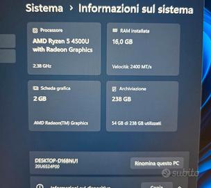 Lenovo Thinkpad L14 Ryzen 5 in buone condizioni estetiche, meccanicamente ed elettronicamente perfetto. Un portatile dal costo per niente esoso e che potrà essere il vostro compagno utile per ogni esigenza giornaliera. Display da 14" IPS FHD Webcam con microfono integrato Amd Ryzen 4500U 16gb di Ram 256 gb di ssd M2 Scheda video amd Radeo graphics BLUETOOTH WIFI HDMI USB C USB 3.1 JACK CUFFIE COMBO LETTORE D'IMPRONTA Modello con 4G LTE,basta inserire una sim per essere sempre connessi,senza aver bisogno di cercare wifi free o Hotspot 💥 Installato Windows 11 PRO attivato 💥 Installata Suite Office '21 PRO PLUS attivata Tastiera originale Italia 🔧 Interventi effettuati dal laboratorio tecnico: Pulizia interna completa da polvere e residui Sostituita pasta termica con Thermalright TF-7 per migliori temperature Test hardware completi (RAM, SSD, porte, display) Installazione e aggiornamento software,drivers,firmware e bios all'ultima release disponibile Sul dispositivo è stato apposto un bollino che certifica gli interventi eseguiti, a garanzia della qualità e per offrire massima trasparenza.