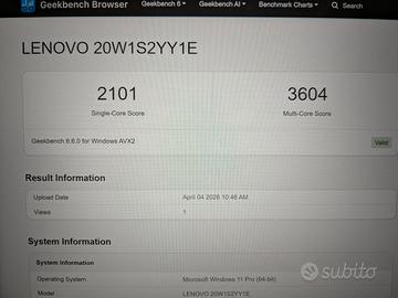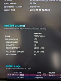 Vendo Lenovo ThinkPad T14 Gen 2i, usato in condizioni perfette scheda tecnica: - Processore: Intel Core i7-1185G7 con 4 core e 8 thread - RAM: 16 GB DDR4 1600 MHz - Storage: SSD NVMe Samsung 512 gb salute ottima - Display: 14" FHD (1920x1080) - Batteria originale da 4372mAh / 51 Wh con soli 105 cicli - Sistema Operativo: Windows 11 Pro Sono disponibile a dare ulteriori chiarimenti o informazioni, a chi è realmente interessato.