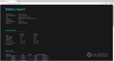 Batteria: Doppia batteria interna con buona autonomia (vedi schermata con report estratto da Win10)