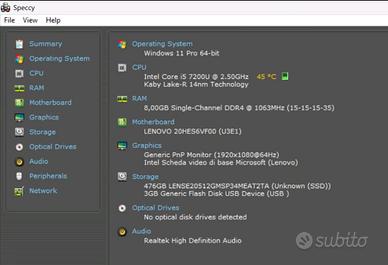 Vendo, come da titolo, Lenovo ThinkPad T470 14" i5-7200U 8 GB 512 GB