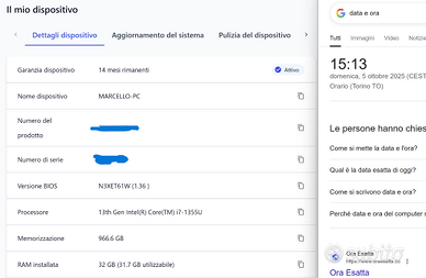 Il dispositivo è perfettamente funzionante e ha 14 mesi di garanzia residua del produttore (come si può vedere dallo screenshot con a fianco la data).