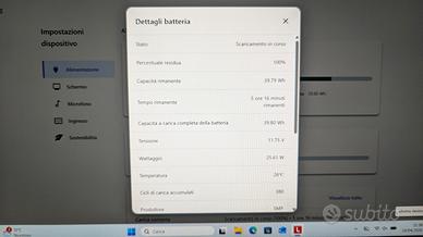 In vendita PC portatile Lenovo Thinkpad X13 Gen1. Il codice macchina è 20T3-S61Q0X: PC prodotto a Febbraio 2021 e non piú in garanzia. Tastiera retroilluminata, layout italiano: NO ADESIVI!!! Display 13,3" FHD (1920x1080): nessun segno, nessun punto di pressione. Scheda WWAN 4G per viaggiare ovunque alla velocità 4G LTE semplicemente inserendo una SIM dati (SIM dati non compresa). Usato: qualche piccolo segno di utilizzo sia sopra che sotto ma in condizioni estetiche più che buone. Funzionalmente perfetto. Pulito completamente all'interno, pasta termica sostituita con pad termico (Honeywell PTM7950), sanificato con l'ozono. Tutto completamente funzionante! Specifiche: Processore: intel i7-10610U (4C/8T, 1,8-4,9 GHz, 8 MB) Grafica: intel UHD graphics integrata RAM: DDR4-2666, 16 Gb (memoria saldata su scheda madre, NON espandibile) Memoria di archiviazione: M.2 512 Gb SSD NVMe originale Lenovo Thinkpad (modello Micron MTFDHBA512TDV con 1573 ore di utilizzo) Fotocamera: HD 720p con Thinkshutter Batteria: interna da 50Wh (e 380 cicli) WLAN + Bluetooth(TM): intel WiFi 6 AX201 + Bluetooth 5.1 WWAN: Si, FIBOCOM L850-GL Lettore di schede: micro SD Display: 13,3 pollici, FHD (1920x1080), 300 nits Sistema operativo: Windows 11 Professional (completamente attivato ed aggiornato), è presente una licenza nel BIOS Alcune note: 1- macchina usata, molto ben tenuta ma con qualche segno: guarda le foto oppure chiedimene pure di nuove. Tutto comunque nelle foto è stato fotografato, volutamente, in modo molto peggiorativo di quanto sia in realtà. 2- caricatore USB-C originale da 65W Consegna a mano zona Venezia (logicamente con possibilità di qualsiasi prova).