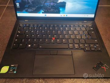 Salve,vendo ottimo notebook Lenovo ThinkPad X1 Carbon Gen 9 di 11a Generazione.Ottimo stato , performante e pronto all uso.Incluso caricabatterie originale Lenovo e borsa zaino Lenovo nuova.Disponibile a qualsiasi prova. Batteria dura ancora moltissimo. NO OFFERTE E RICHIESTE RIDICOLE! Di seguito caratteristiche : -Processore Core™ i7-1165G7 2,8 GHz -max 4700 GHz -Ram 16 GB LPDDR4 ,4266MHz -Disco SSD PCIe da 1 TB -Display 14" FHD+ (1920 x 1200) IPS, antiriflesso -Tastiera retroilluminata -Lettore impronta digitale -Windows 11 Pro
