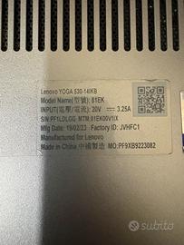 Vendo Lenovo Yoga 530-14IKB ideale per ricambi o riparazioni. 📌 Condizioni: •Display + Touchscreen PERFETTI ✅ •Tastiera, scocca e cerniere in buono stato •Il PC si presenta bene esteticamente ⚠️ ATTENZIONE: •Venduto SENZA RAM •Venduto SENZA SSD •Non testato completamente (vendita come ricambi) 📊 Dettagli modello: •Modello: Lenovo Yoga 530-14IKB •Codice: 81EK •Alimentazione: 20V – 3.25A •Notebook convertibile (touch + modalità tablet) 🔧 Ideale per: •Recupero display touchscreen •Ricambi (scheda madre, scocca, tastiera, batteria, ecc.) •Tecnici / riparatori