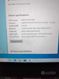 Intel yoga 14 pollici processore lintel core m 1.7 GHz 220 SSD touch 8gb di ram 3200x1800 risoluzione display un.po rovinata superfice cover superiore PC perfetto in tutto come hardware