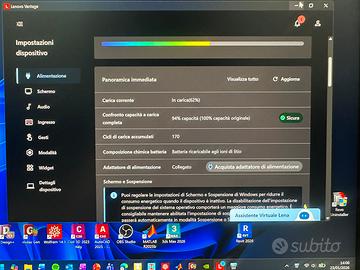 - Batteria 73 Wh, stato attuale 170 cicli di carica.