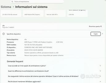 Processore AMD Ryzen 7 4700U (8C / 8T, 2.0 / 4.1GHz, 4MB L2 / 8MB L3); con questo processore si hanno ottime prestazioni a consumi ridotti