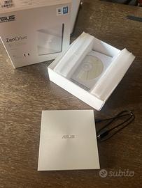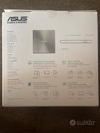 Lettore CD e DVD ASUS ZENDRIVE 8x Completo di scatola originale, cavo di connessione al PC USB-C e cd con driver di installazione. Compatto e molto leggero da portare con te