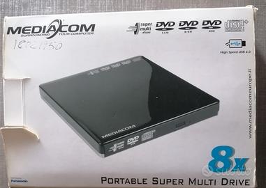 Lettore Portatile DVD e CD, super Multi Drive 8X e masterizzatore della Mediacom, usato poche volte, completo di scatola, cavetti USB e Audio, CD e libretto info di installazione, nessun difetto o problema.