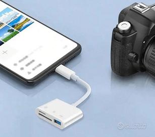 Lettore di schede USB multi-funzione 3-in-1 con connessione Tipo-C, compatibile con computer e smartphone / Micro SD / USB. Rapido nella lettura.