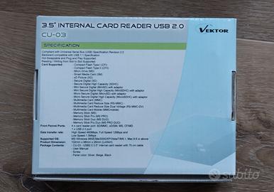 Lettore schede per PC desktop interno con accessori ed imballo originale. Caratteristiche e descrizione in foto.