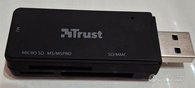 Card Reader USB TRUST usato pochissimo. Legge Card M2, Micro SD , MS/MSpro, SD/MMC , si collega ad una normalissima porta USB del computer
