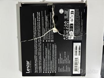 Lexar 16gb ddr4 2x8gb 3200mhz per pc desktop. Vendo per passaggio a ddr5. Le ram sono state utilizzate per 2 anni e sono perfettamente funzionanti. È necessario configurare la velocità dal bios perché è possibile che di default siano settate a 2666mhz. La scatola, come si vede in foto, è danneggiata solo sul retro a seguito di una vorace apertura. Prezzo adeguato all’anno di acquisto e non trattabile.