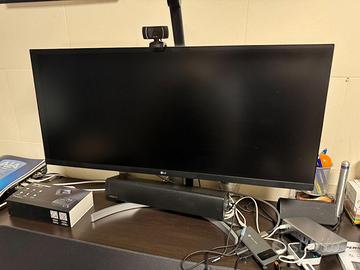 LG 34WN650 Monitor 34" UltraWide 21:9 LED IPS HDR 400, 2560x1080, AMD FreeSync 75Hz, Audio Stereo 14W, 2xHDMI (HDCP 2.2), Display Port 1.4, Uscita Audio, Altezza Regolabile, Flicker Safe, Bianco